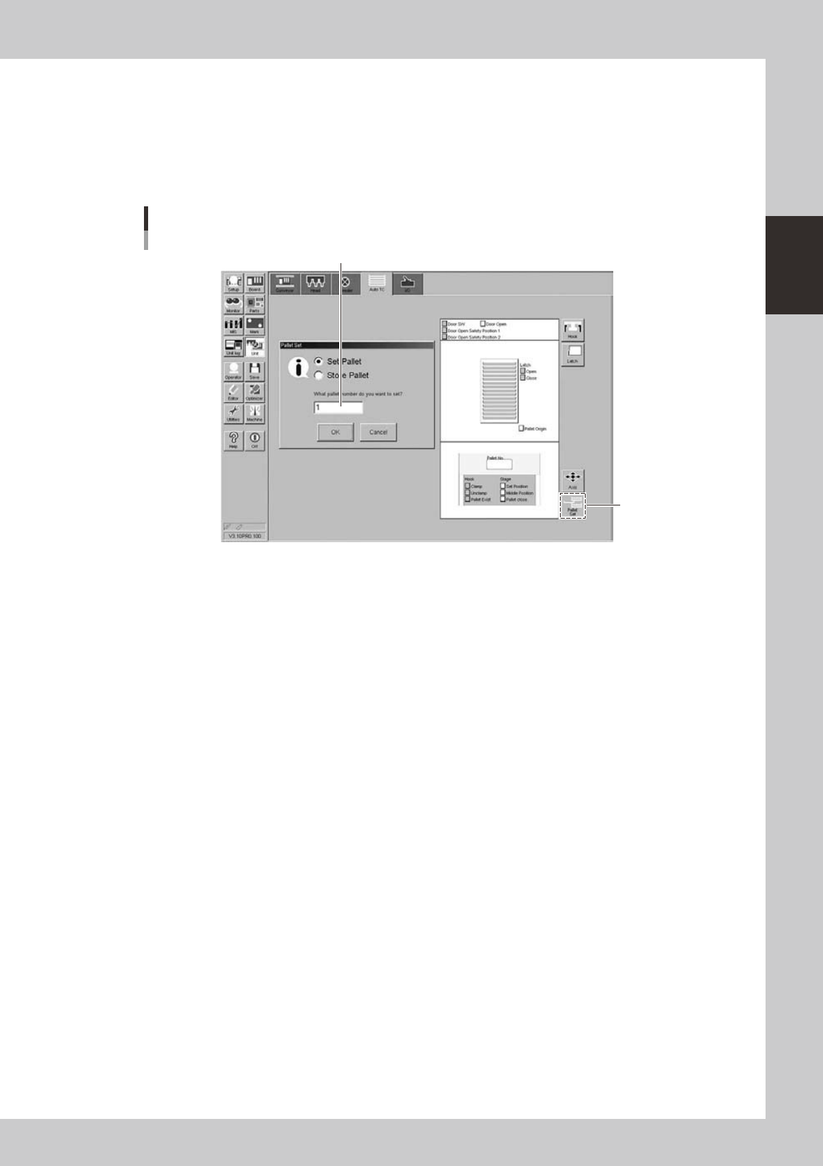 Press the [Pallet Set] button to check whether a pallet is correctly extracted from the tray changer.