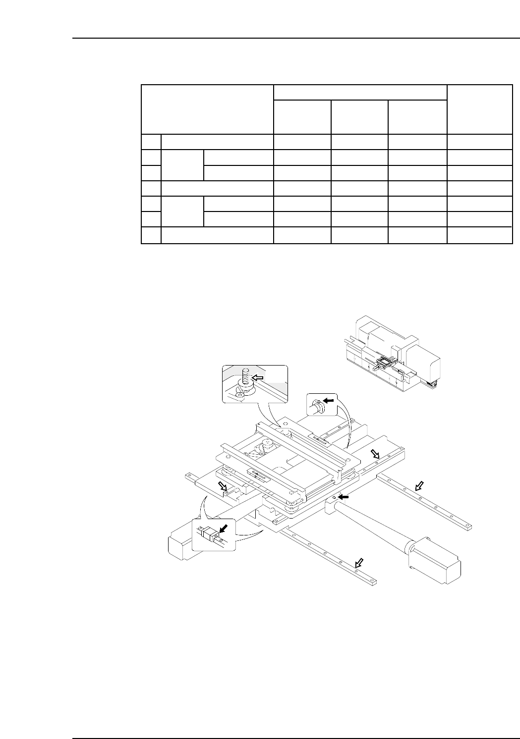 <CP-642/642E, CP-642M/642ME, CP-643E/643ME> Arrow marks in the illustration indicate lubrication points. Black arrows indicate points where a grease gun is required. Same for Y-axis Z-axis ball screw: Apply multemp…