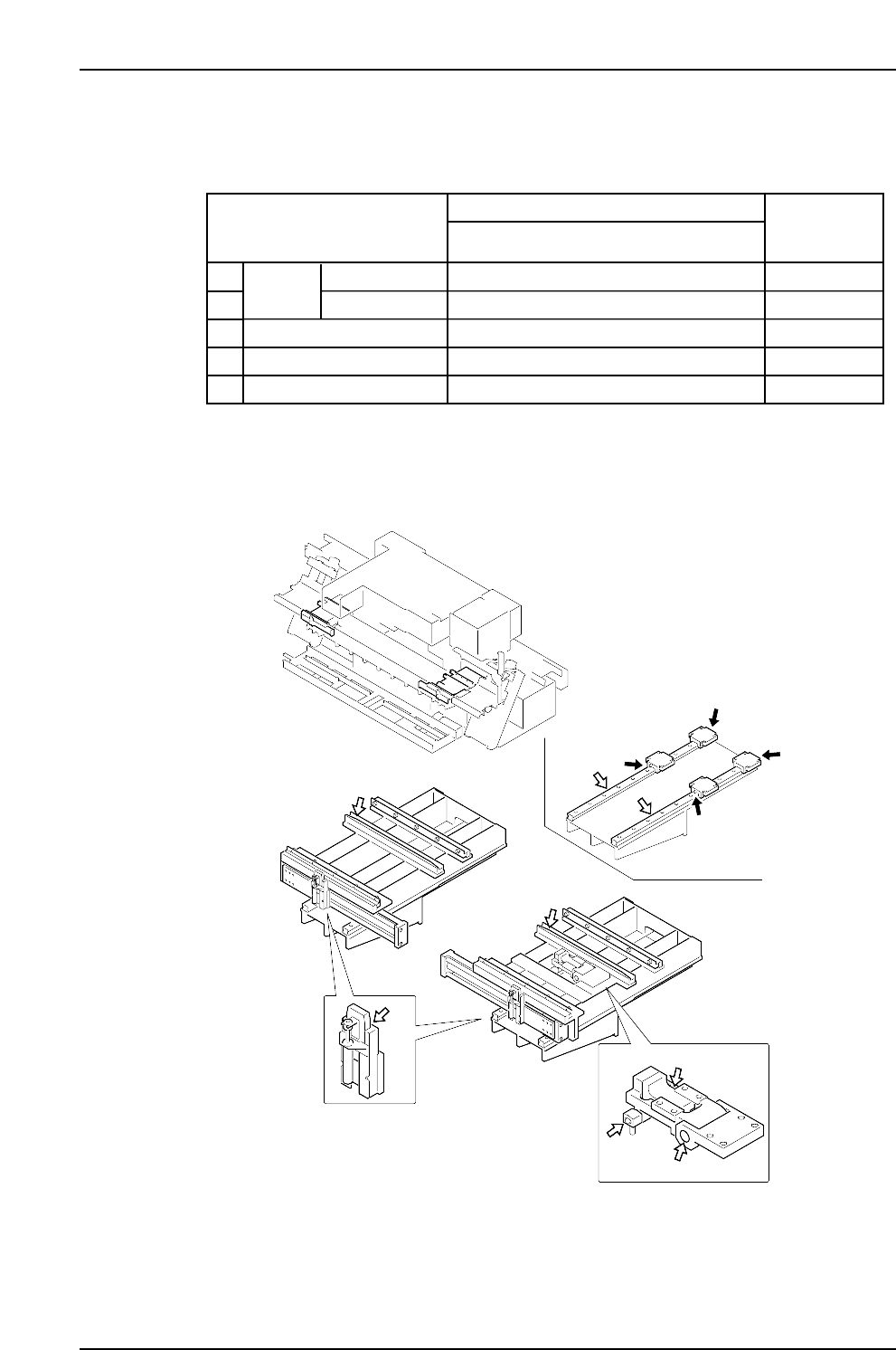 2.1 1 Lubricating the Setup Station <CP-652CE only> Arrow marks in the illustration indicate lubrication points. Black arrows indicate points where a grease gun is required. Cam groove Cam groove Slider Stopper CP6…