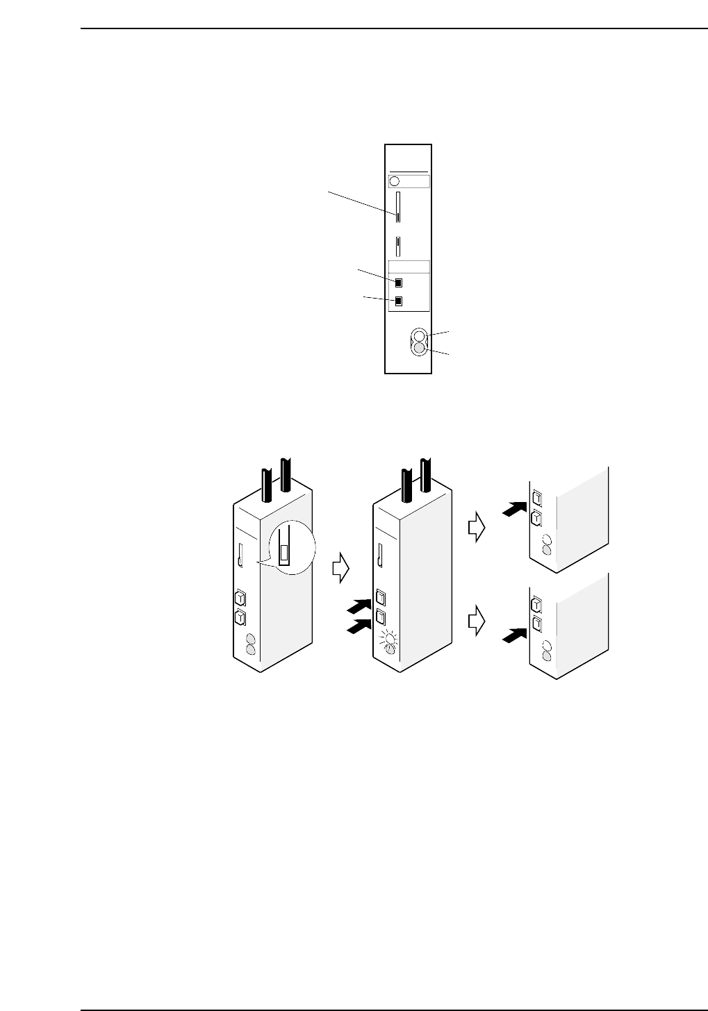 6. Set the mode changing switch to RUN, the green LED will then start to flash. It is