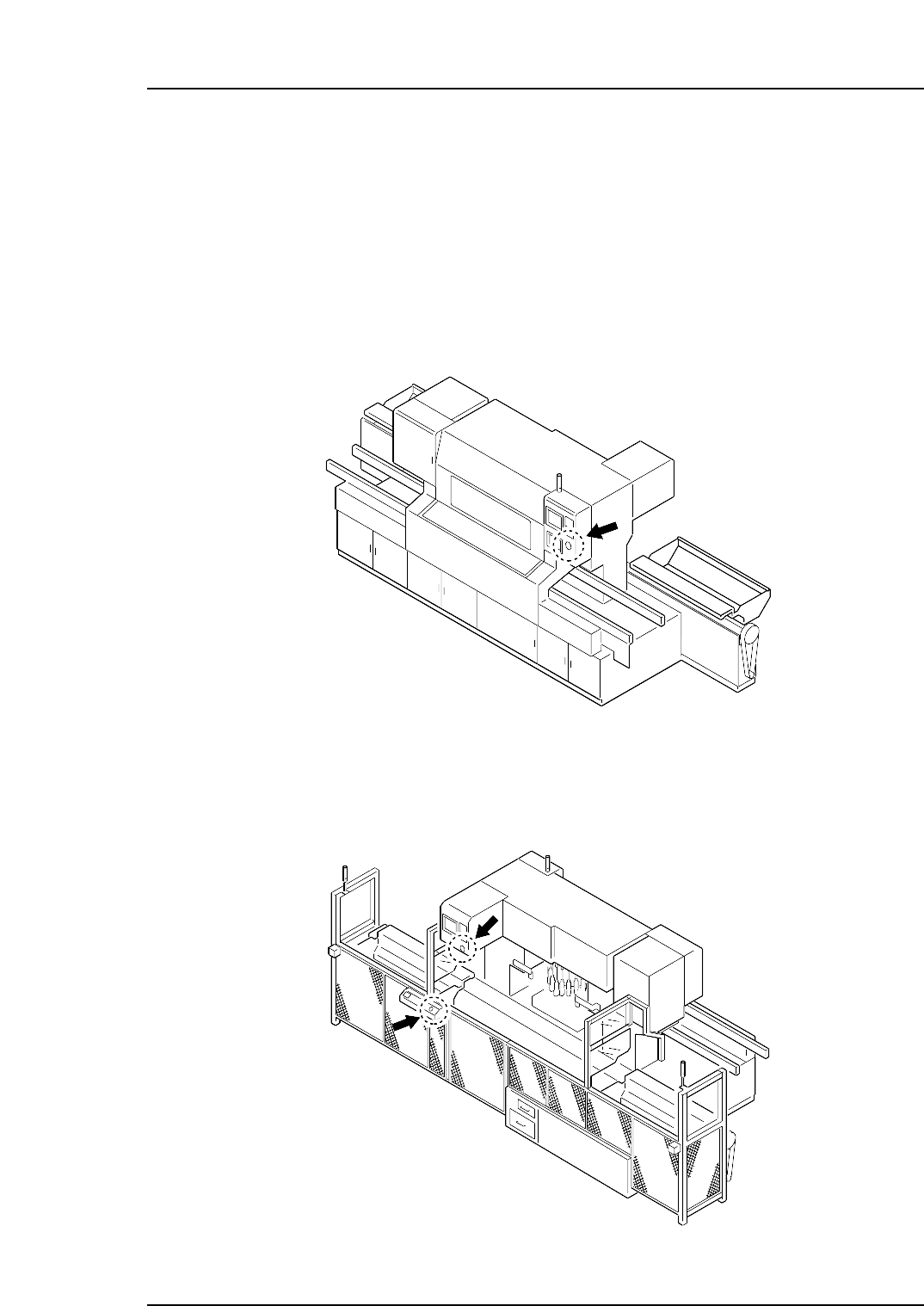 5. The EMERGENCY ST OP Buttons In the event of an emergency, press any of the red EMERGENCY STOP buttons located on the machine at the positions indicated in the figures below. The EMERGENCY STOP buttons turn off the 200…