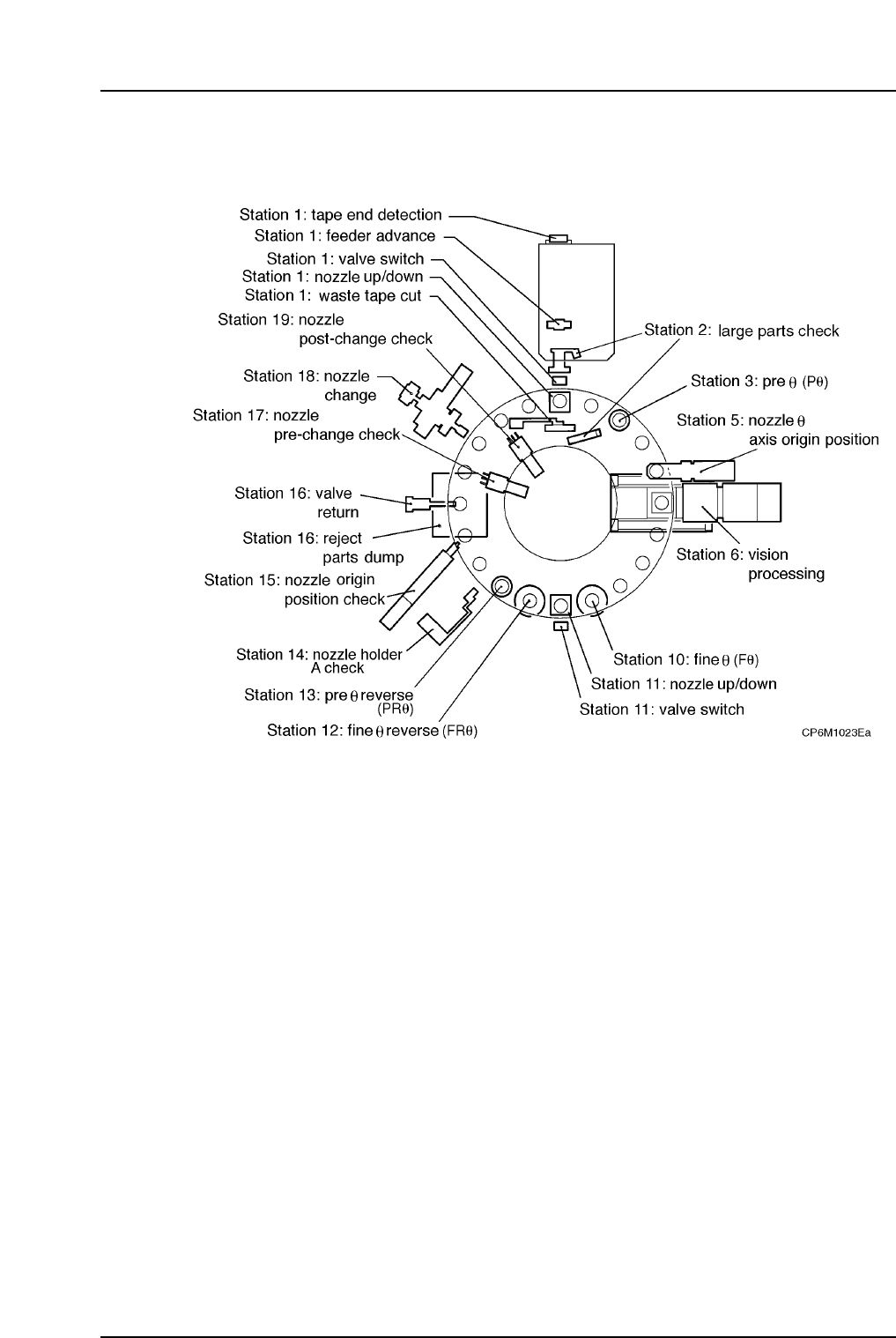 theta (Fθ) rotation is carried out at station 10. Because only slight