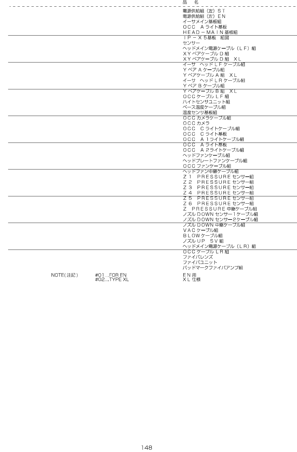 REF.NO NOTE PART NO D E S C R I P T I O N Qty