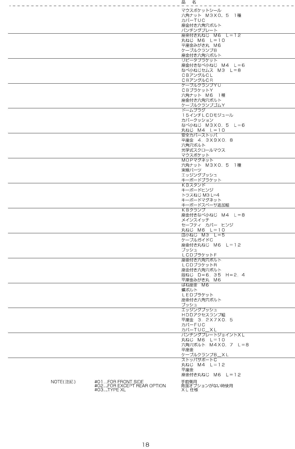 REF.NO NOTE PART NO D E S C R I P T I O N Qty