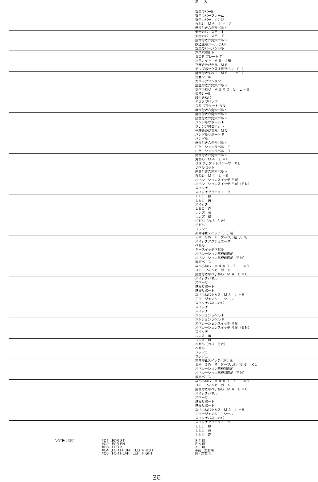 REF.NO NOTE PART NO D E S C R I P T I O N Qty