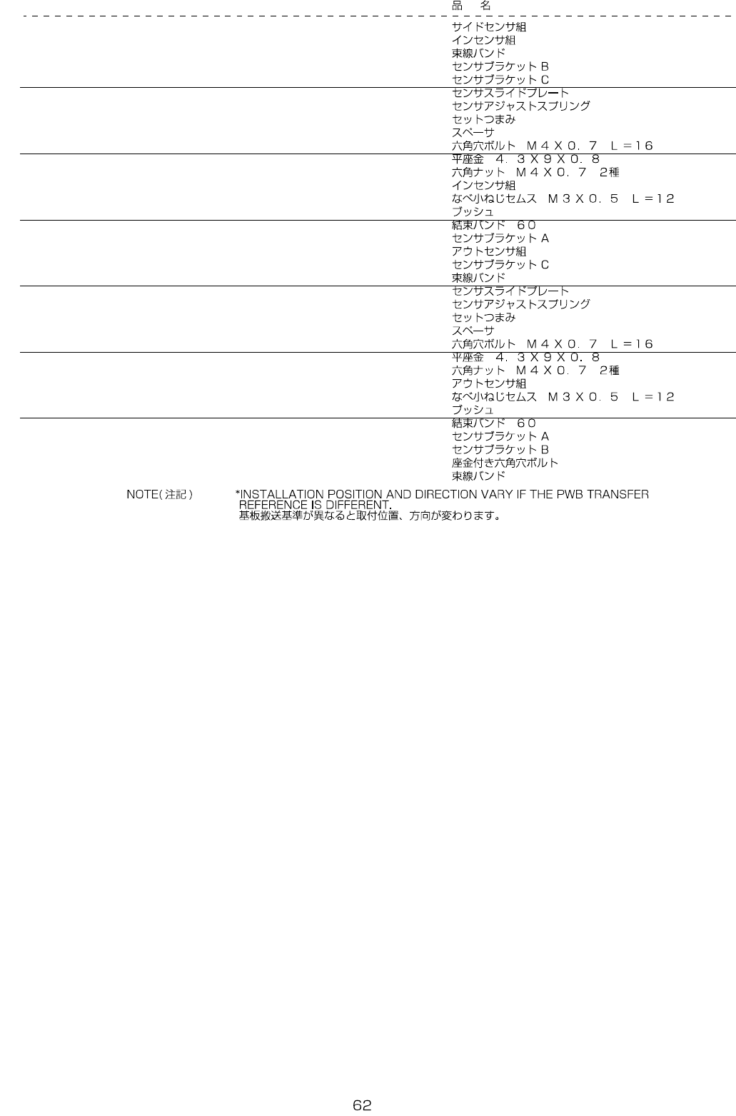 REF.NO NOTE PART NO D E S C R I P T I O N Qty