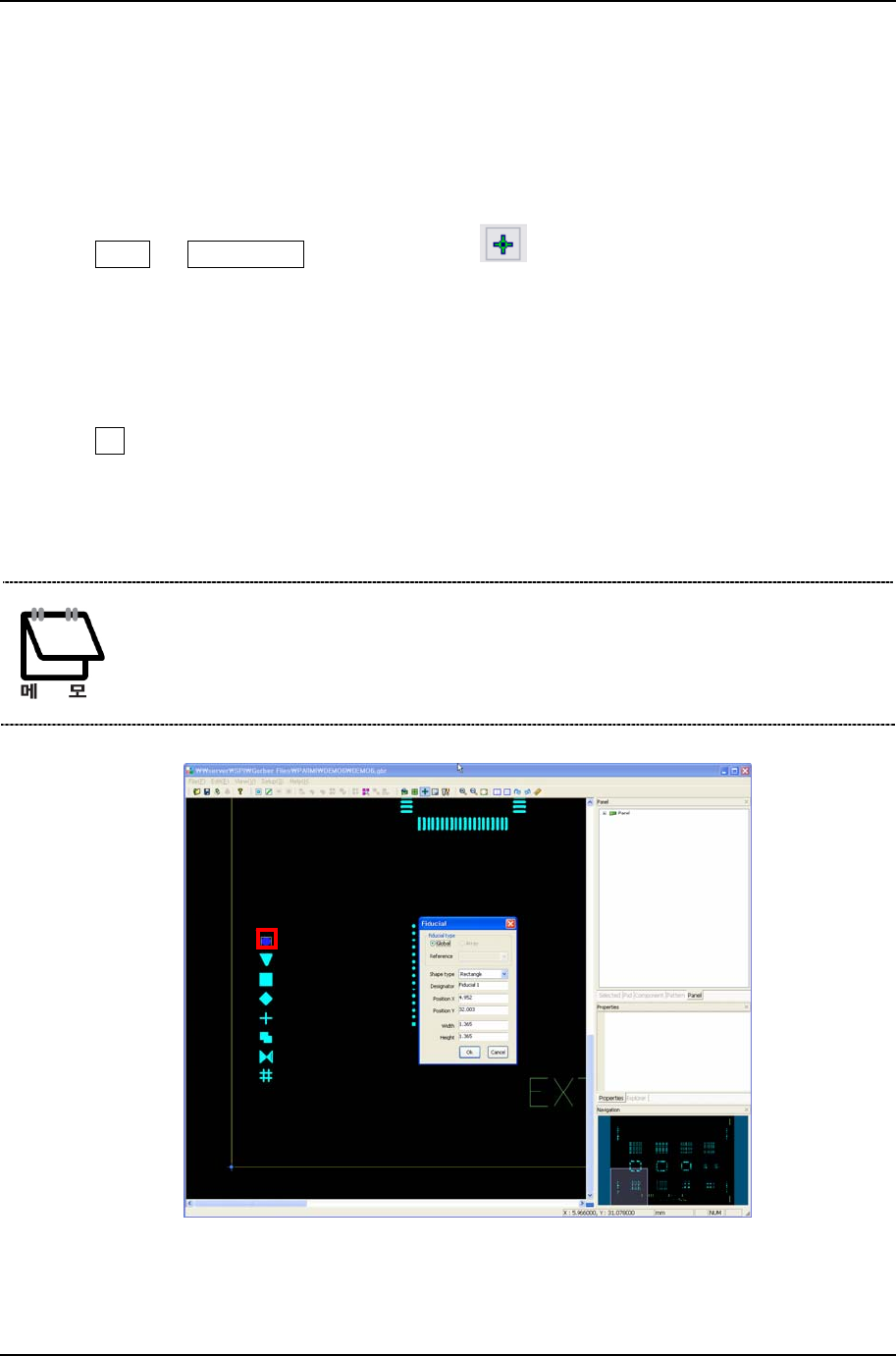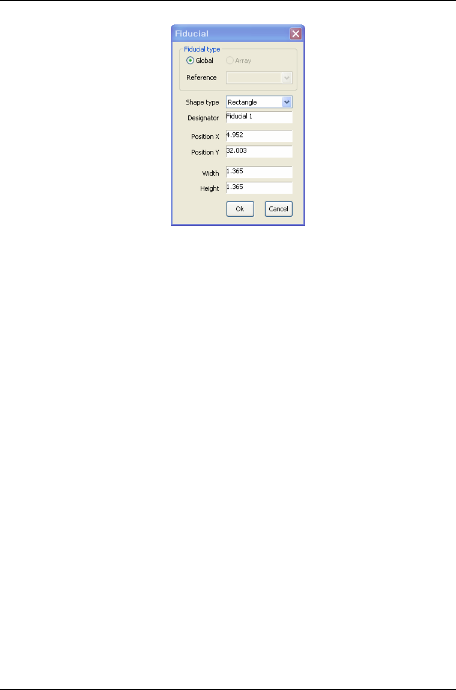 ⑤ 대화상자에서 피두셜 형상, 크기, 위치 등을 확인한다.