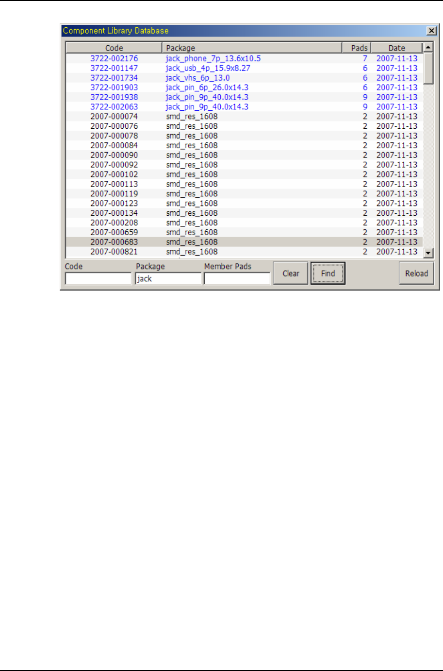 데이터 베이스에 등록된 모든 컴포넌트 정보를 확인 및 검색 할 수 있다.