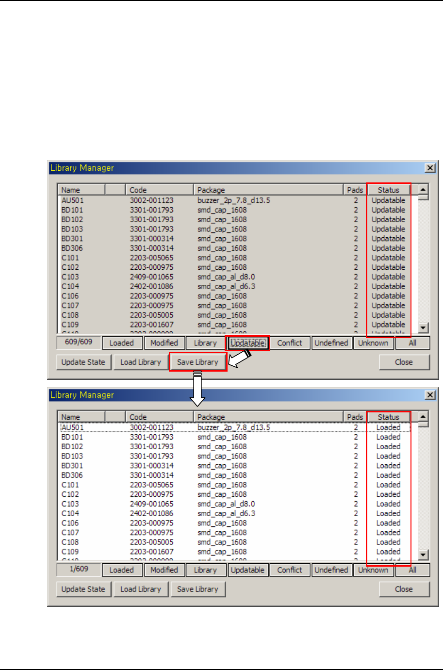 [그림 3-50] 라이브러리 등록 및 컴포넌트 상태변화