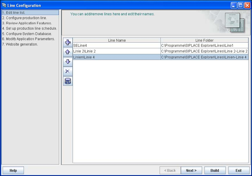 → The added production lines will be shown in the Line Configuration - Edit Line List dialog
