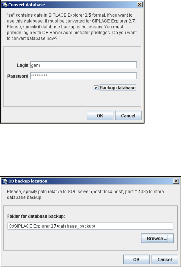 → Before performing the conversion, the system creates a backup file of the database. Specify