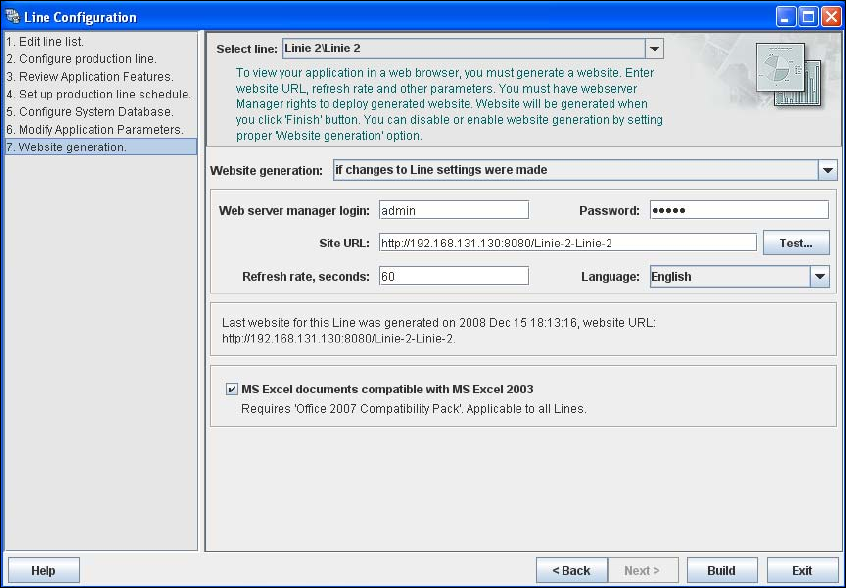 → In order to monitor your production line in the web browser, you will need to generate a website.