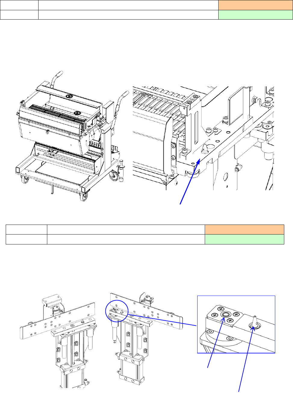 2) 请确认「台架定位销」(两侧)附近没有芯片元件等异物。