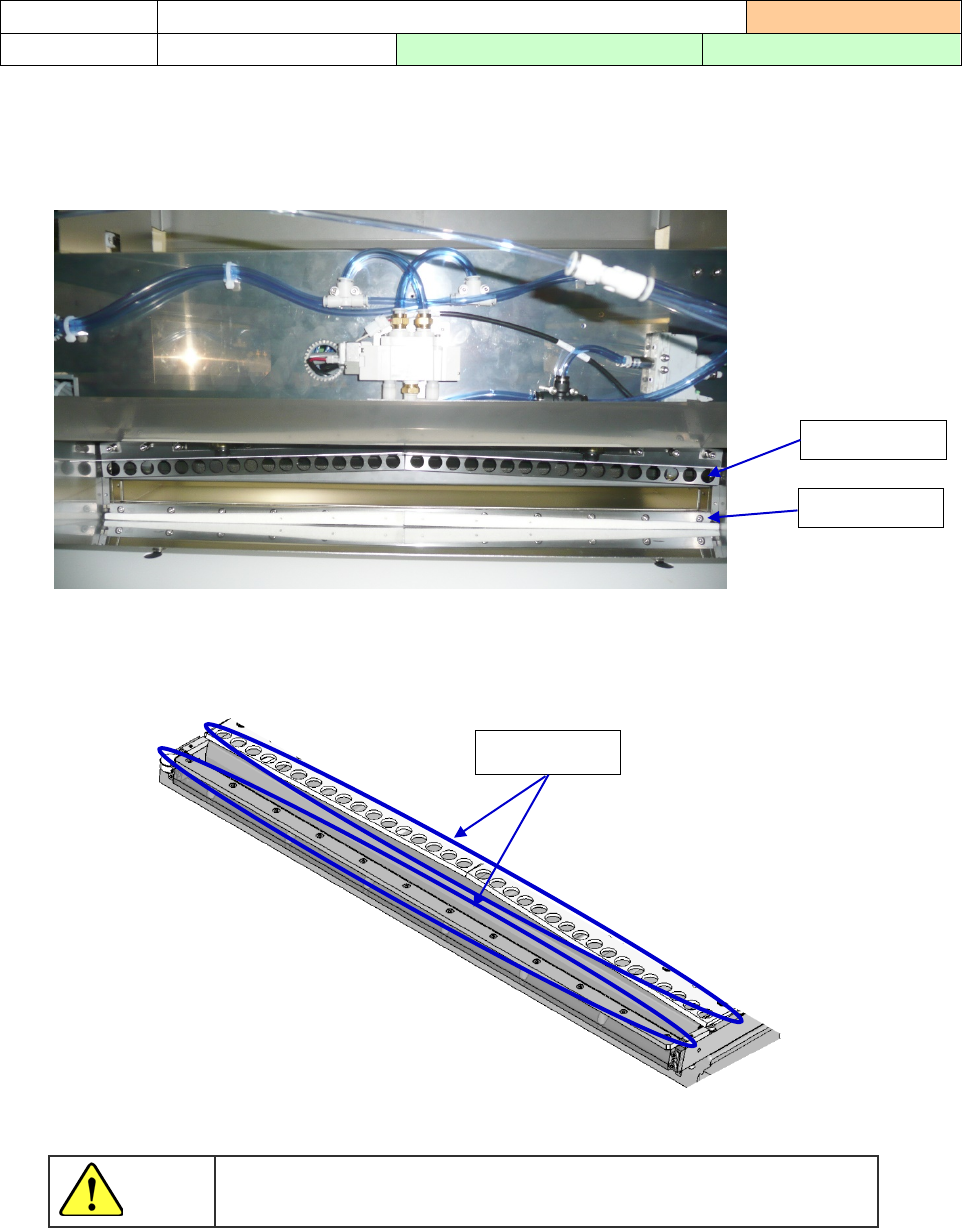 操作手册 3- 24 清扫部位 3-2- 15 切带刀刃 实施频度:每 6 个月 清扫内容 清扫切带刀刃的脏 污 使用工具:绘画笔、六角扳手 使用润滑油: 64 59 润滑油 ※清扫刀刃时,请戴上防割手套进行作业。 1) 作业前,请关闭装置 的电源。 2) 请戴上防割手套,用 棉纱等清扫刀刃。 ( 请涂抹酒精,擦掉 老化的润滑油。 ) 切割机装置 切割机保洁和润滑脂 涂敷部位 切带刀刃暴露,切勿 用手触摸。 警告 可动刀刃 固定刀刃 保…