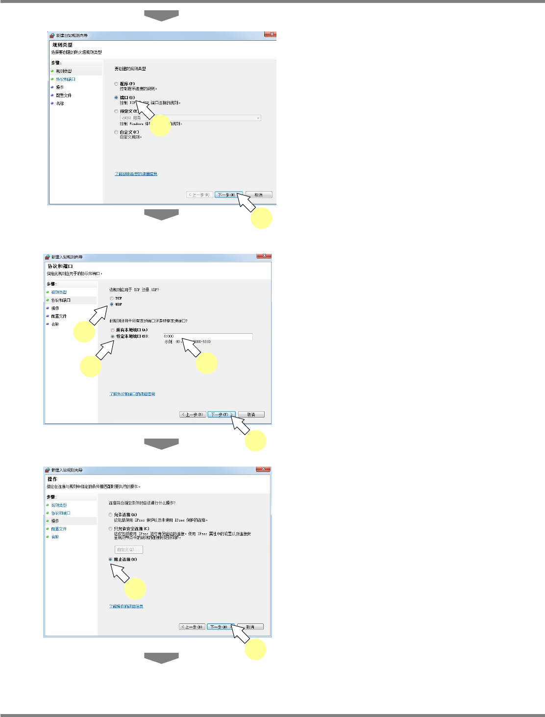 NPM-DGS 程序手册 2.1 NPM-DGS 的安装 EJS9AC-MB-02P-15 Page 2-87 3 点击‘端口’的复选框按钮。 4 点击 [ 下一步 ] 。 5 点击‘ UDP ’的复选框按钮。 6 点击 ‘ 特定本地端口 ’ 的复选框按钮。 7 在 ‘ 特定本地端口 ’ 中输入‘ 61000 ’。 8 点击 [ 下一步 ] 。 9 点击 ‘ 阻止连接 (K)’ 的复选框。 10 点击 [ 下一步 ] 。 Install…