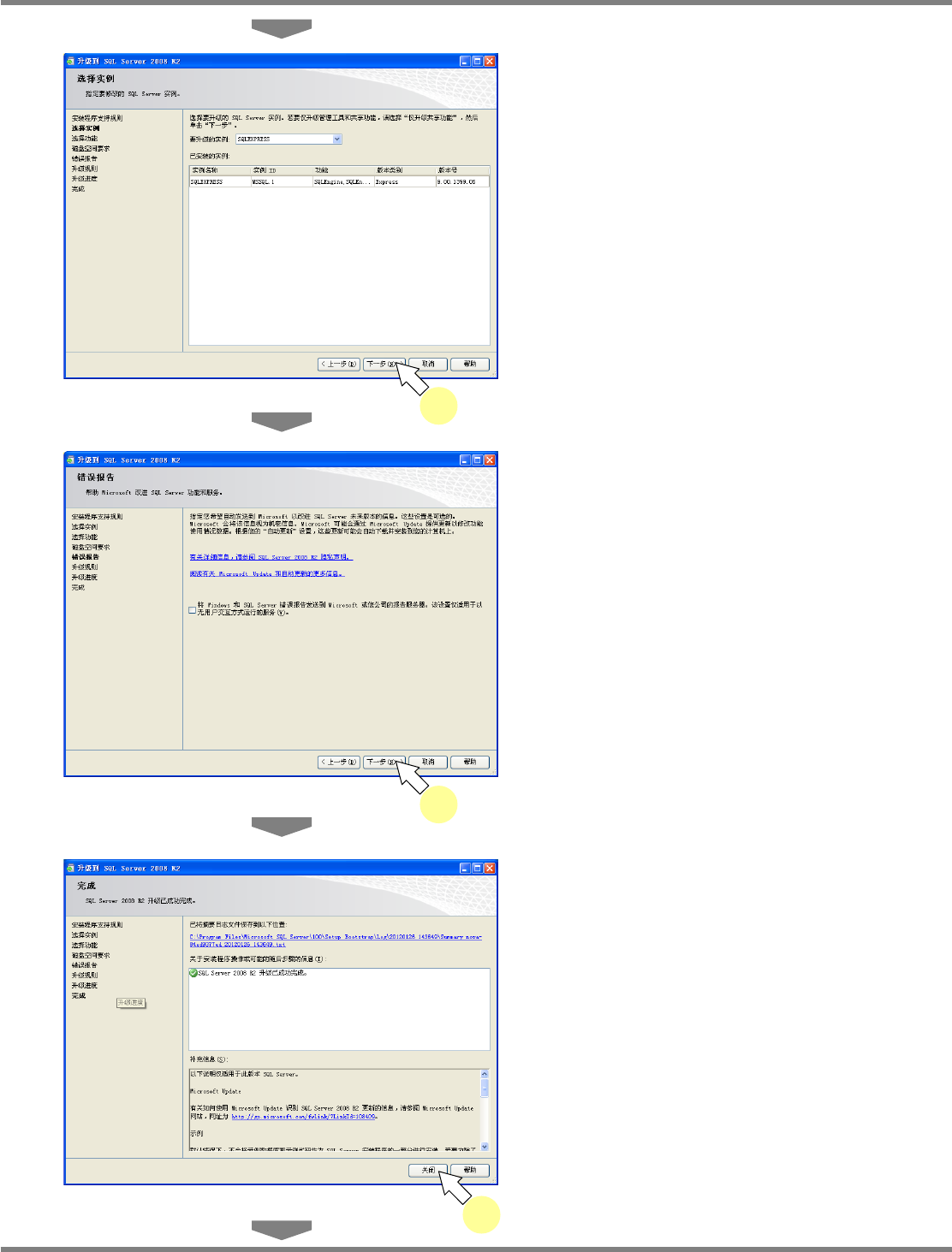 NPM-DGS 程序手册 2.2 DGS 应用程序的升级 Page 2-122 EJS9AC-MB-02P-15 升级到 SQL Server 2008 除了 SQL 数据库本体以外, 请同时对数据备份等用于 排除故障的 ‘SQL Server Management Studio Express’ 也实施版本升级。 请事先从 Microsoft 公司的网点下载下述 2 个资料,并做好准备。 Microsoft SQL Ser…