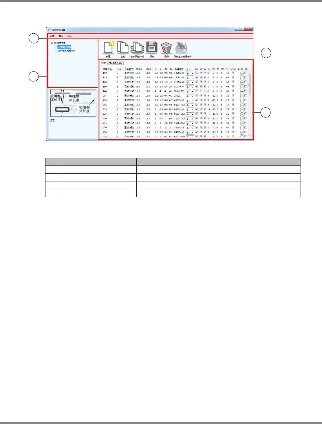 吸嘴程序库画面的构成
