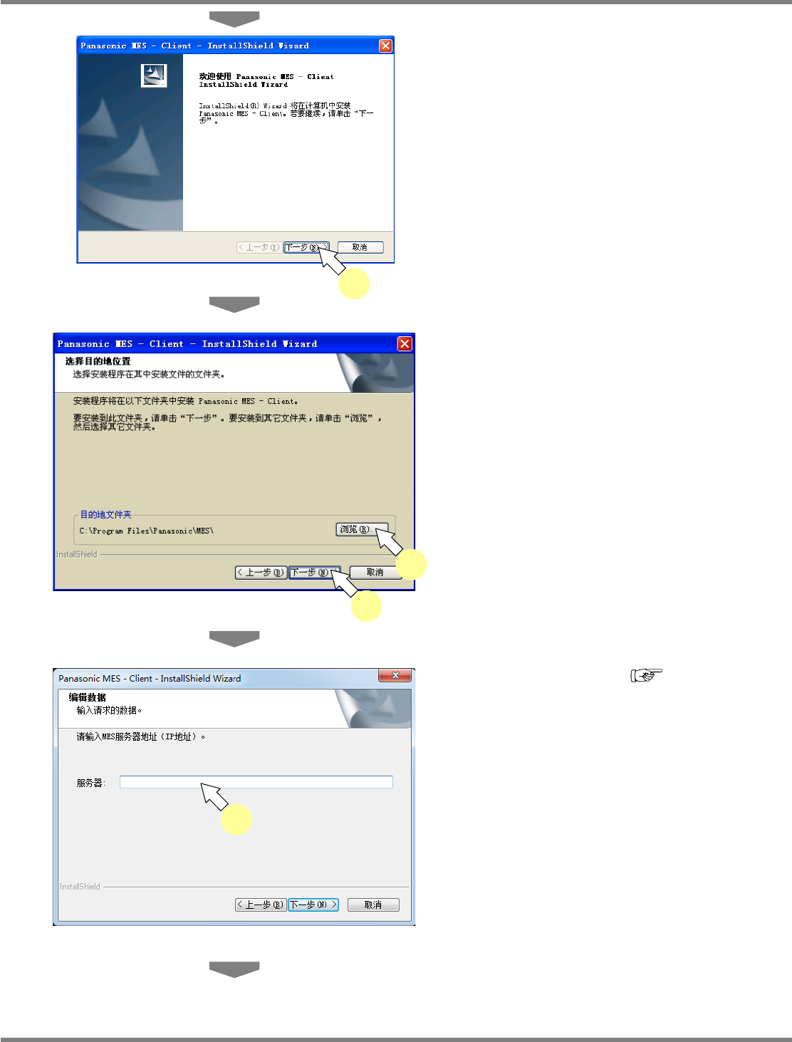 NPM-DGS 程序手册 2.1 NPM-DGS 的安装 EJS9AC-MB-02P-15 Page 2-75 6 点击 [ 下一步 ] 。 7 需要变更安装目的地时,点击 [ 浏览 …] 选择文件夹。 通常无需变更。 8 点击 [ 下一步 ] 。 9 在 ‘ 服务器 ’ 栏里输入 ‘2.1.10 NPM-DGS 的安装 ① DGS 的安装 ’ ‘ 分别安装 DGS 客户端、 数据库、 服 务器的功能时 ’ ‘ 安装…
