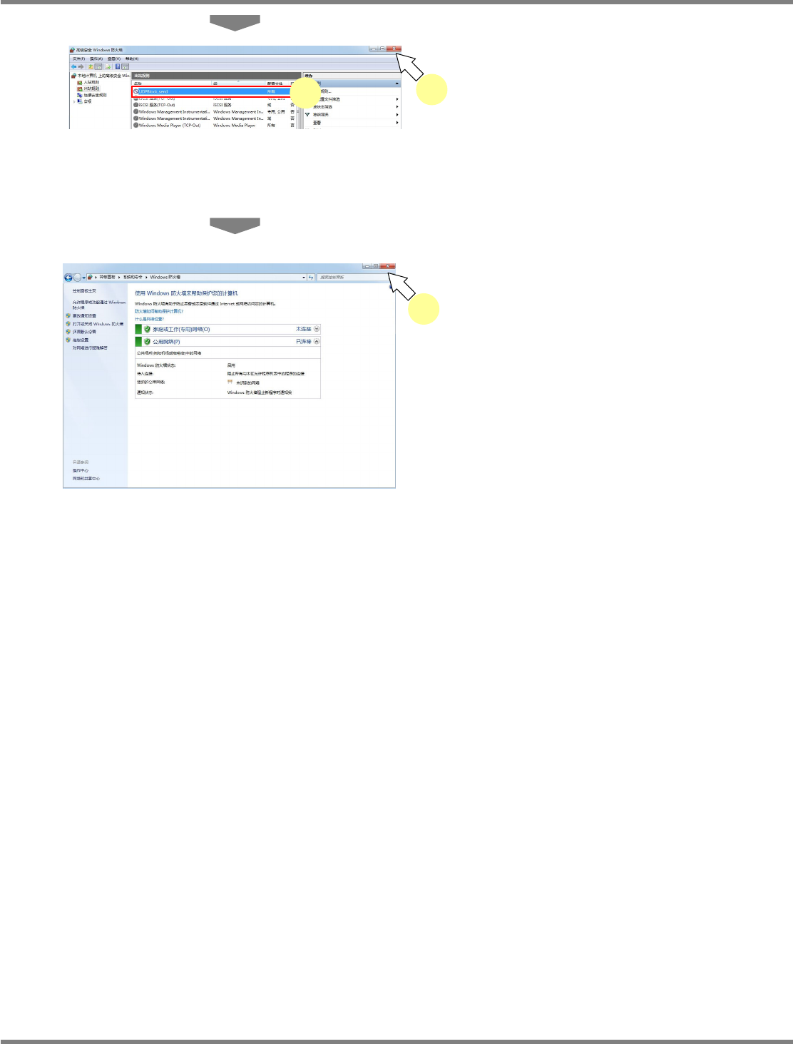 NPM-DGS 程序手册 2.1 NPM-DGS 的安装 EJS9AC-MB-02P-15 Page 2-91 28 确认已在‘出站规则 ’ 的一览中,追加 了在步骤 26 输入在 ’ 名称 ’ 中的字符串。 29 关闭 < 高级安全 Windows 防火墙 > 画 面。 30 关闭 <Windows 防火墙 > 画面。 Install020402-2 0C01 30 Install020402-3 2C00 2…