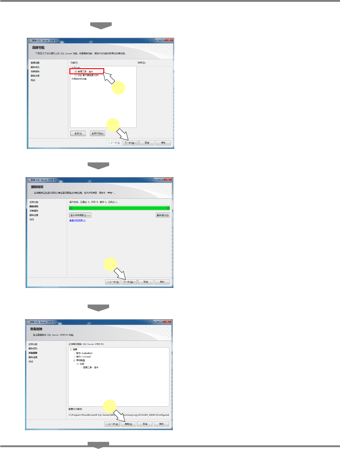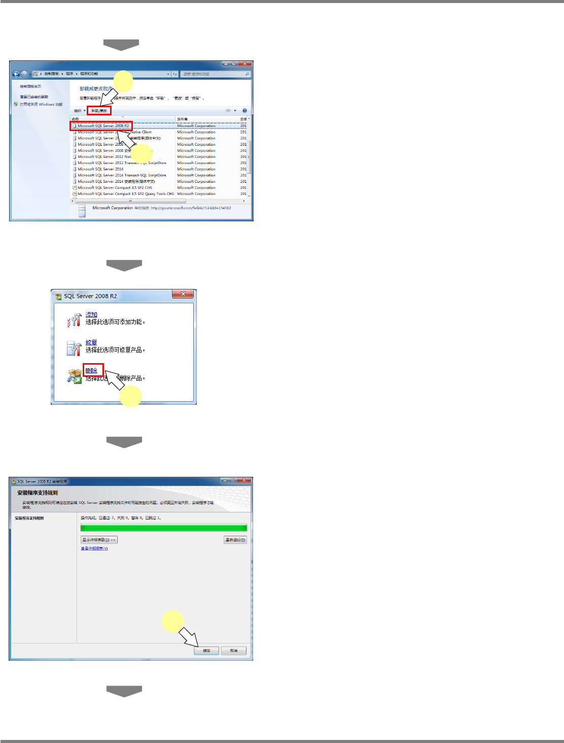 NPM-DGS 程序手册 2.2 DGS 应用程序的升级 Page 2-132 EJS9AC-MB-02P-15 3 选择需要卸载的 Microsoft SQL Server 2008 R2 后,点击 [ 卸载 / 更改 ] 。 4 点击 [ 删 除 ] 。 5 点击 [ 确定 ] 。 Install020101S-1 34C00 4 Install020101S-1 35C00 5 Install020101S-1 33C00 3 3