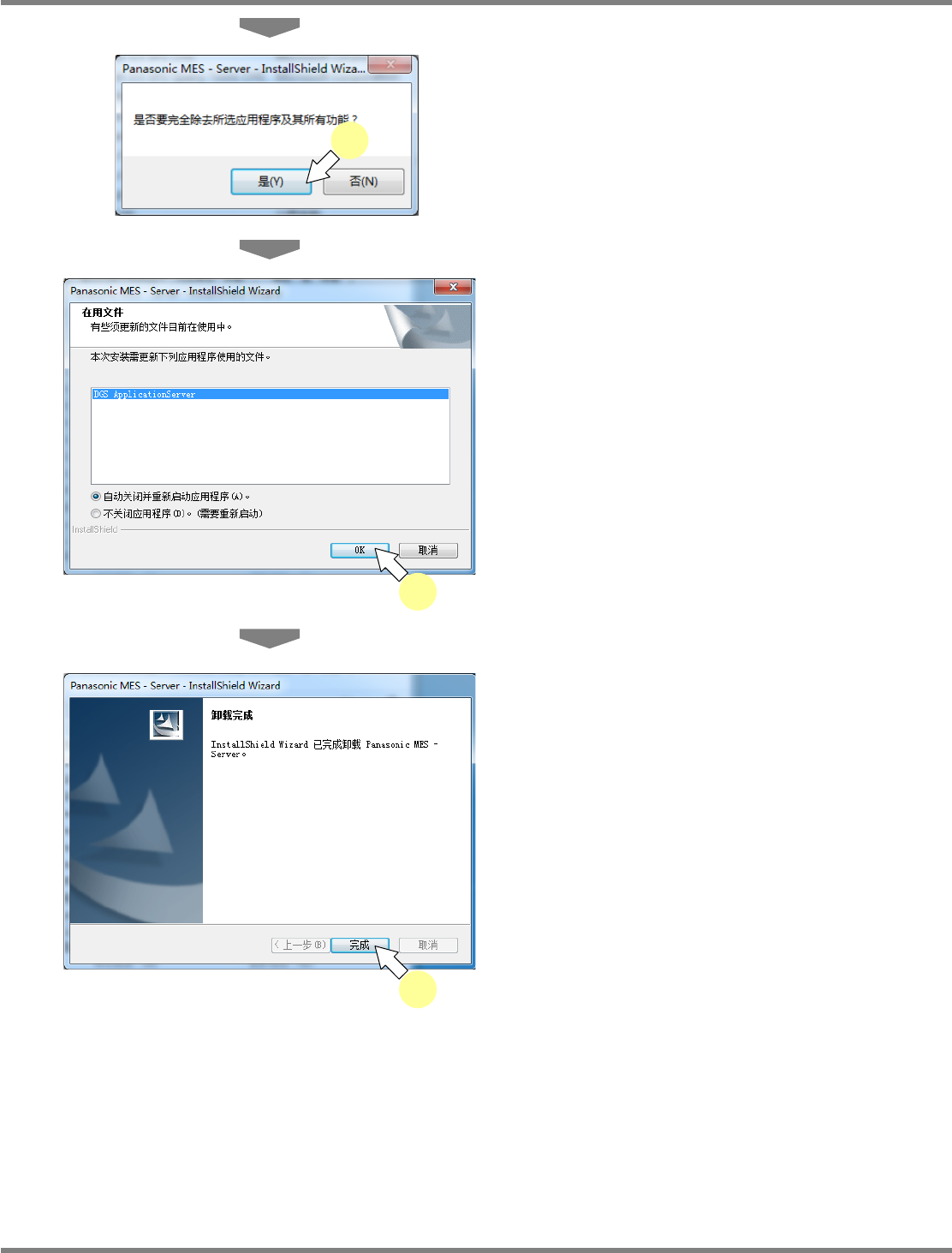 NPM-DGS 程序手册 2.3 DGS 的卸载 EJS9AC-MB-02P-15 Page 2-137 5 点击 [ 是 ] 。 显示出卸载画面。 6 点击 [OK] 。 当安装有 DGS 的客户机等时, 将显示使用中的 文件。 7 点击 [ 完成 ] 。 关闭卸载画面。 Install020600S-0 4C02 5 Install020600S-0 6C00 6 Install020600S-0 5C02 7