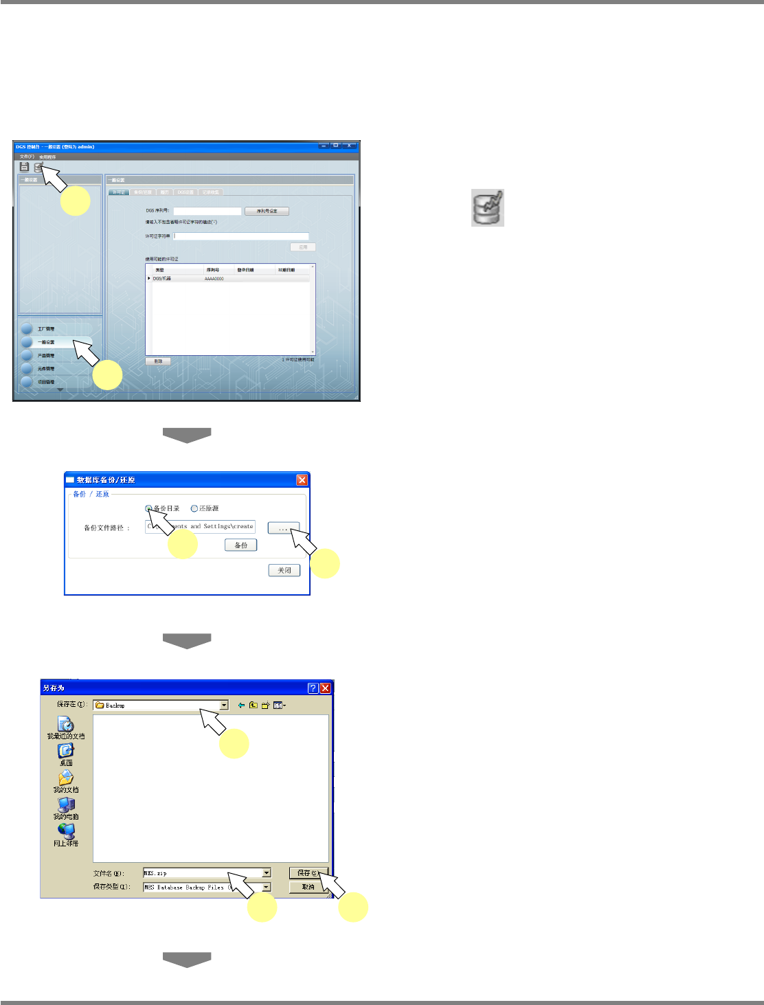 NPM-DGS 程序手册 3.2 关于环境设定画面 EJS9AC-MB-03P-13 Page 3-9 8 点击 [ 备份 ] 。 9 点击 [ 确定 ] 。 将会保存备份文件。 除了上述以外的备份方法, 还可通过 [ 备份 ] 按钮 启动。请参照下述记载。 ( ‘3.2.2 备份 / 还原 ■手动备份 ’) Environment03 0103S-03C00 Environment03 0104S-06C01 9 Enviro…