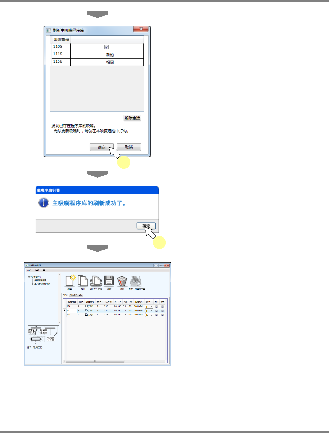 确认需要更新的吸嘴后,点击