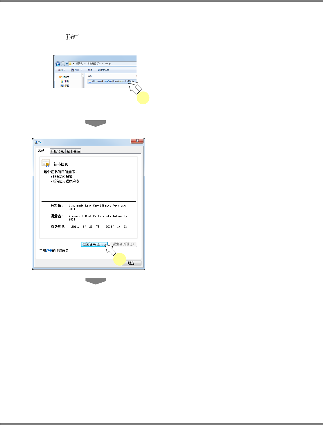 在没有连接互联网的环境下,以及没有所需的证书时,需要在安装之前先导入证书。