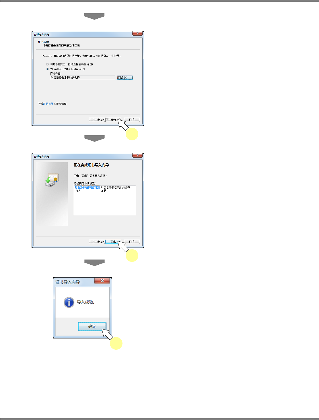 将执行证书的导入,并显示警告对话框。