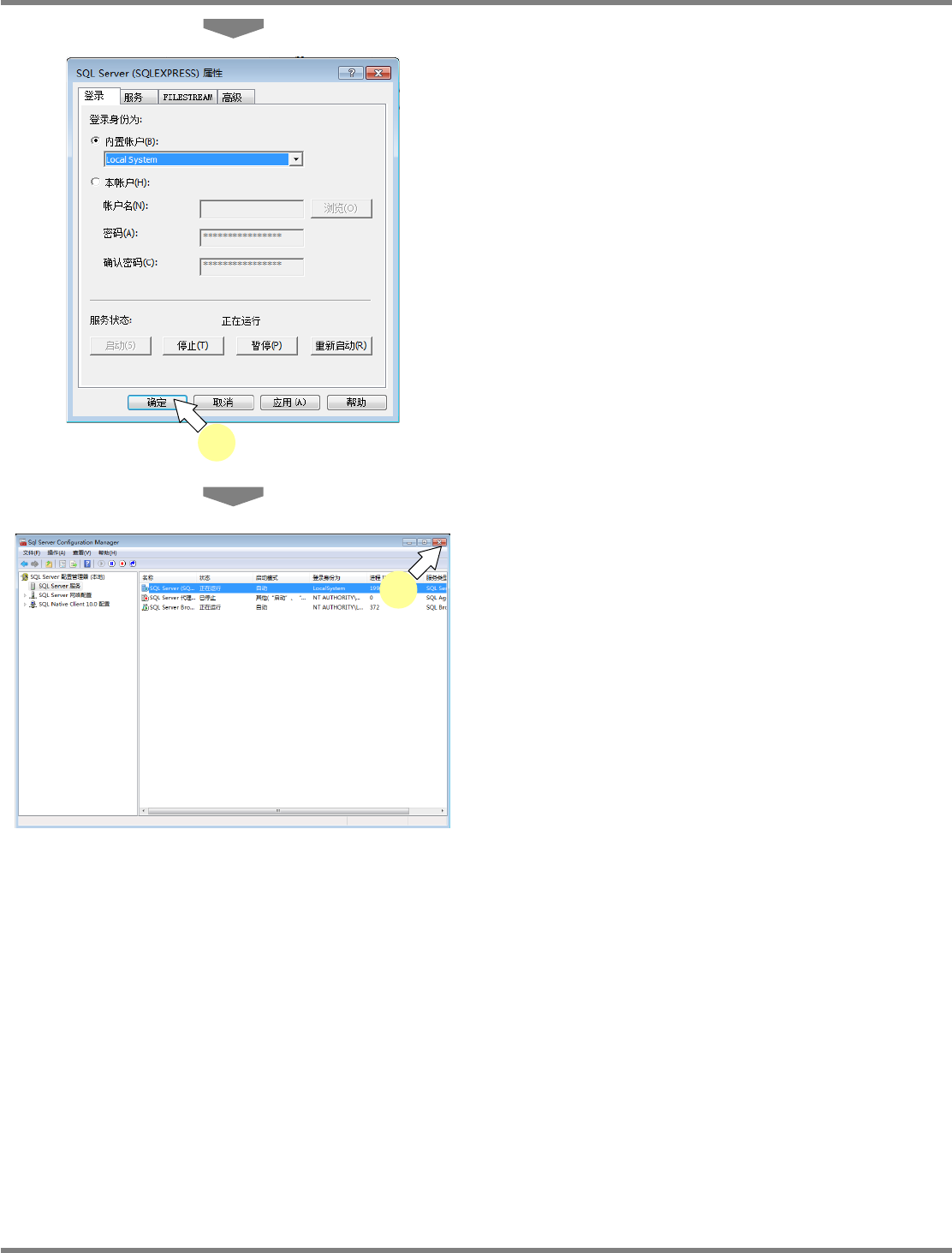 NPM-DGS 程序手册 2.1 NPM-DGS 的安装 Page 2-58 EJS9AC-MB-02P-15 6 点击 [ 确定 ] 。 7 关闭 <SQL Server Configuration Manager> 画面。 Install020106S-0 5C00 7 Install020106S-0 4C00 6