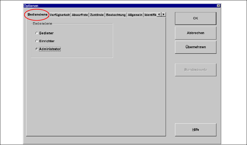Abb. 3 - 6 Dialog "Optionen"- Bedienebene