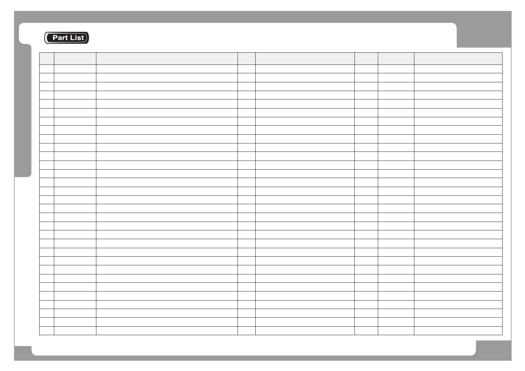 NO. PART NO. PART NAME Q'TY Old No. Supply Supply LT Reference
