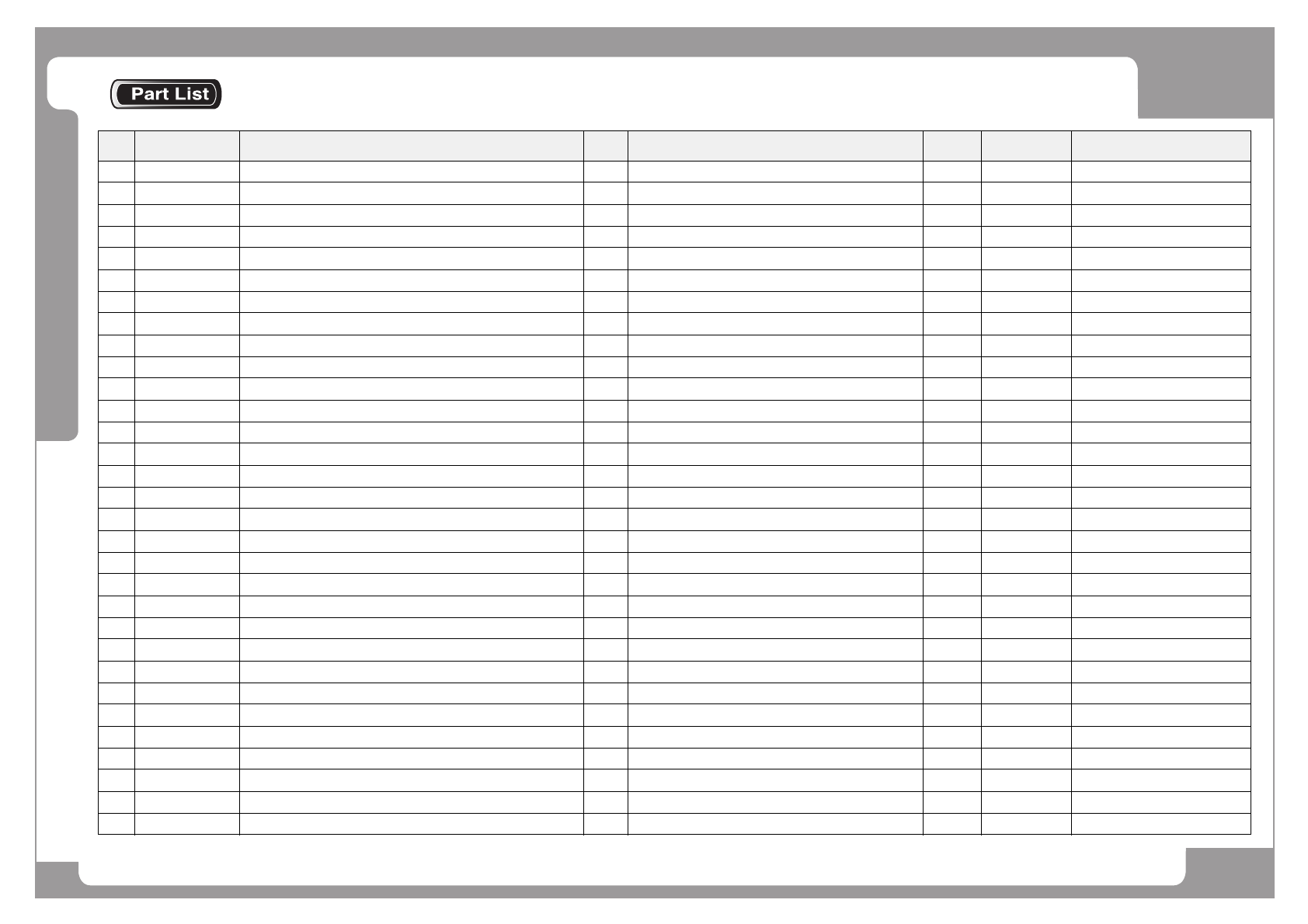 NO. PART NO. PART NAME Q'TY Old No. Supply Supply LT Reference