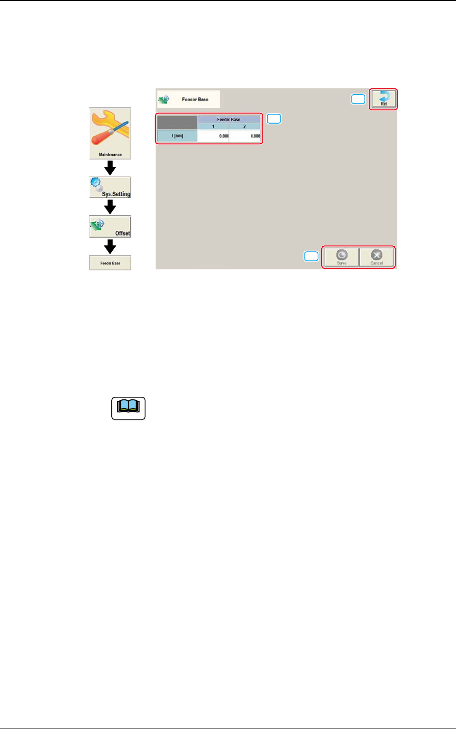 Wird der [Feeder base]-Tab im Bildschirm "Offset Data" gedrückt, öffnet sich der