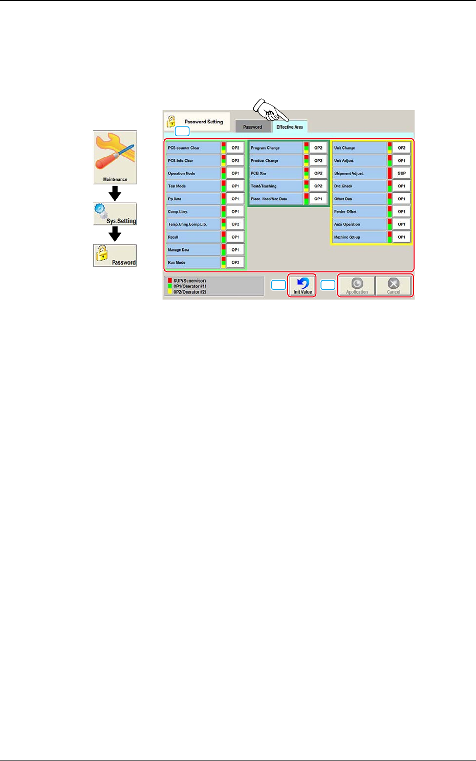 Wird im Bildschirm "Password Setting" der Tab [Effective Area] gedrückt,