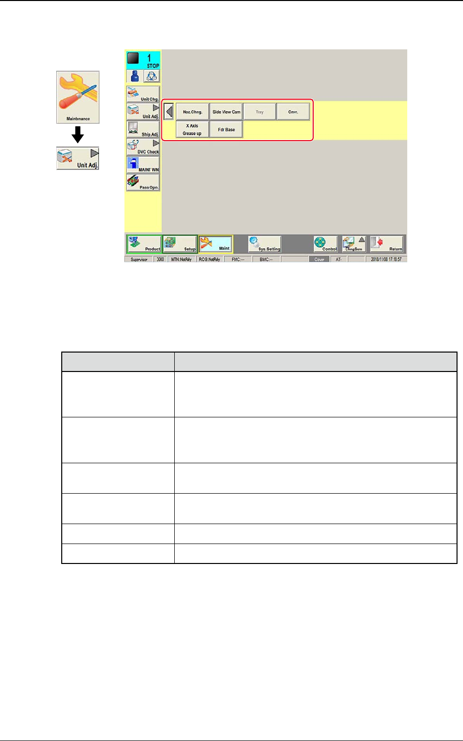 DEUKYX 1-11 193-3100 4. Unit Adj. 4. Unit Adj. Grafischer Ablauf F3A13 "Unit Adj."-Untermenü Die folgenden in der Untermenüleiste angeordneten Schaltächen werden verwendet, um die Bedienbildschirme für die Aus…