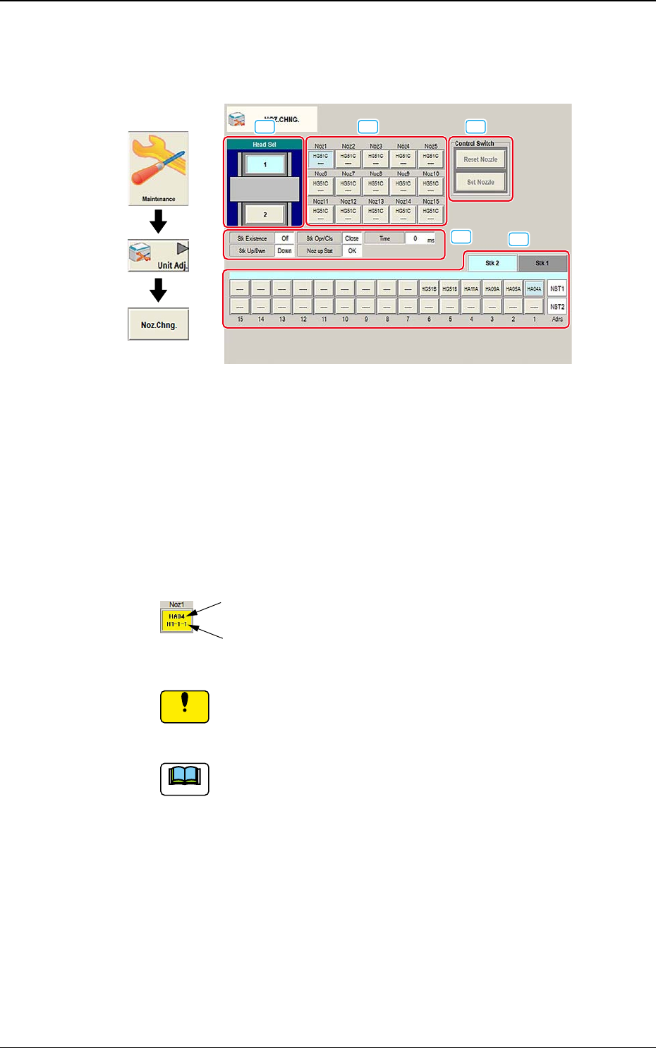 DEUKYX 1-13 193-3100 4.1 NOZ. CHNG. [4] “Control Switch”-Gruppenfeld Es werden die folgenden Bedientasten angezeigt. Wir, nachdem eine der Bedientasten gedrückt wurde, innerhalb von 10 Sekunden auf dem Bedienfeld [START]…