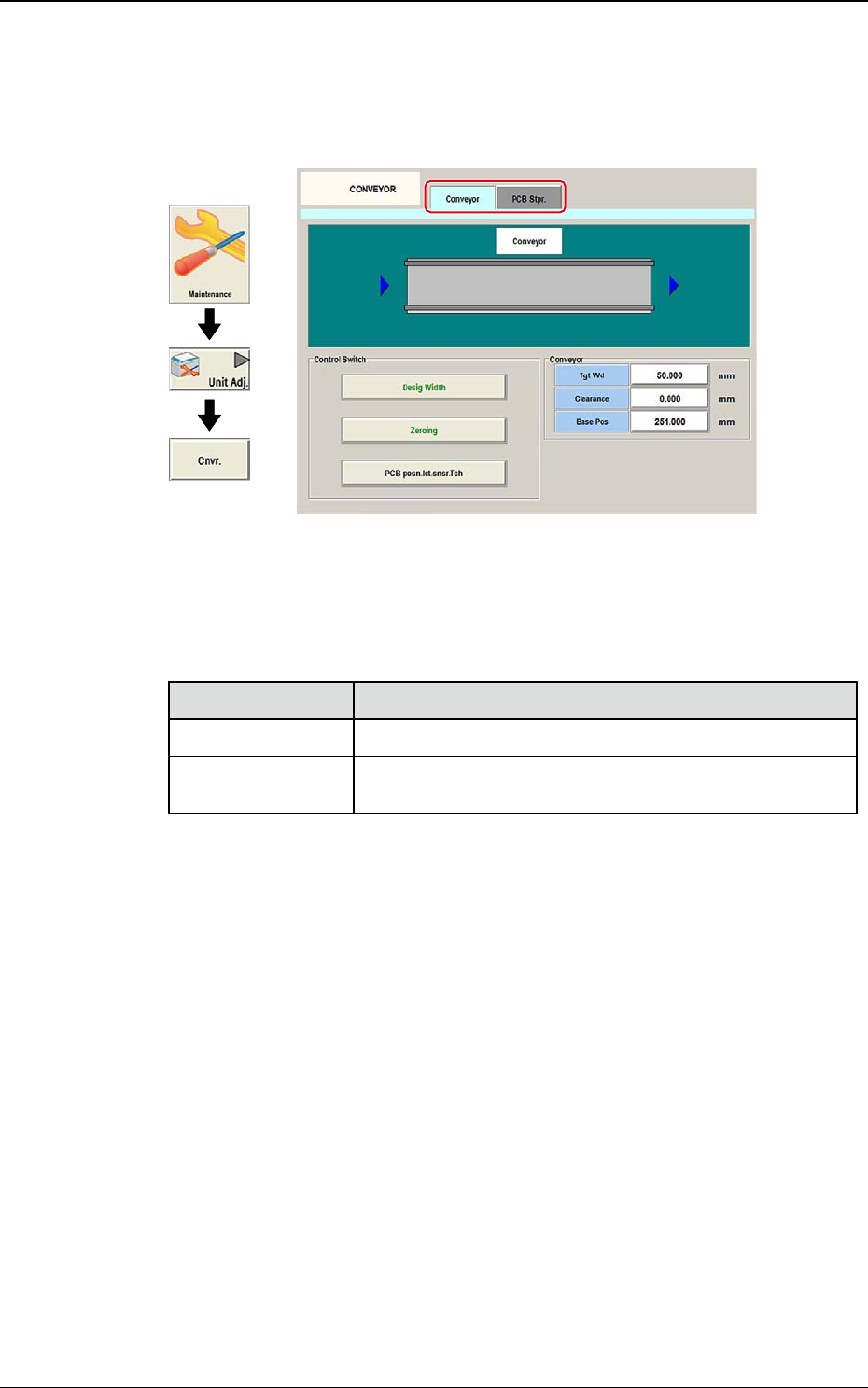 Der "CONVEYOR"-Bildschirm verfügt über die folgenden 2 Register-Tabs.