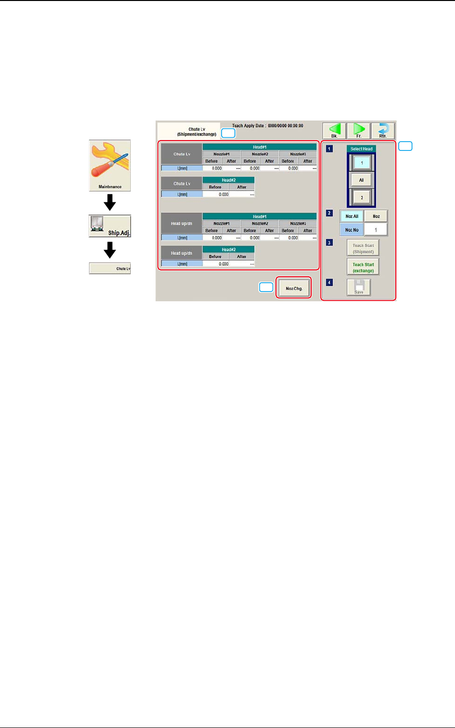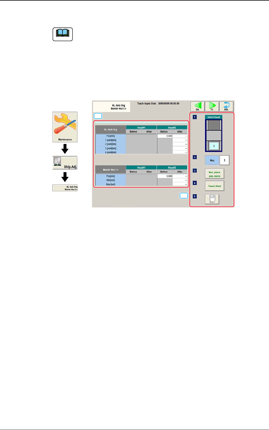 DEUKYX 1-30 193-3100 5.2 NL-Axis Org Master Noz Lv [2] T eaching-Funktionen Die folgenden Schaltächen werden für die Teaching-Funktionen verwendet. Select head Wählen Sie den Kopf, für den das Teaching durchgeführt werd…