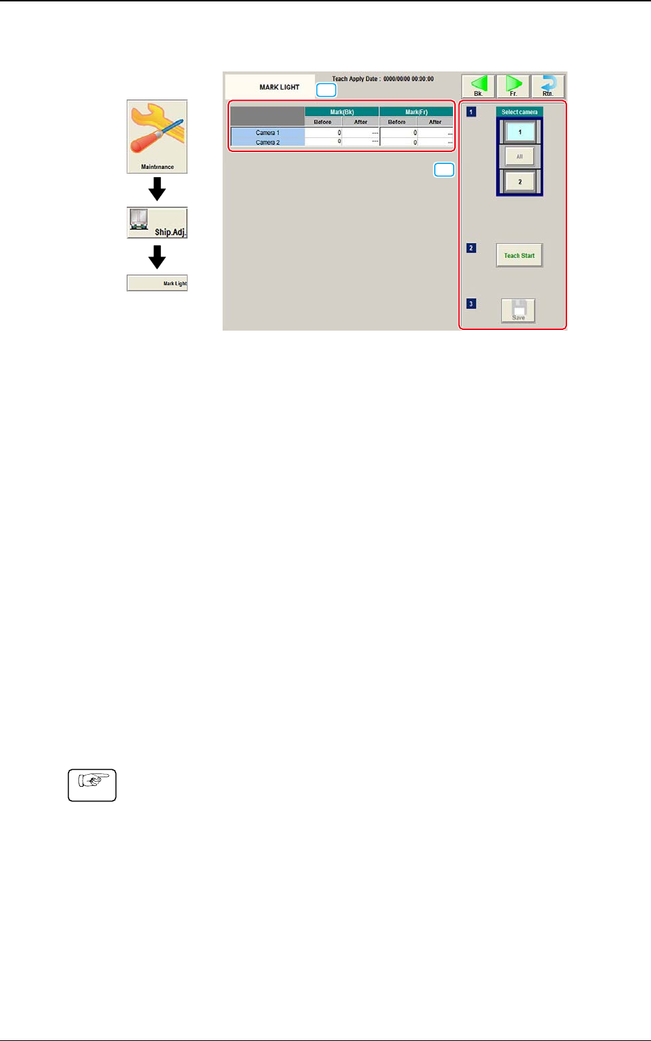 DEUKYX 1-39 193-3100 5.6 MARK LIGHT 5.6 MARK LIGHT Grafischer Ablauf [1] [2] F3A32 [1] T eaching-Datenanzeige Hier werden die Offsetdaten für jede Referenzmarke der ausgewählten Kamera angezeigt. [2] T eaching-Funktionen…