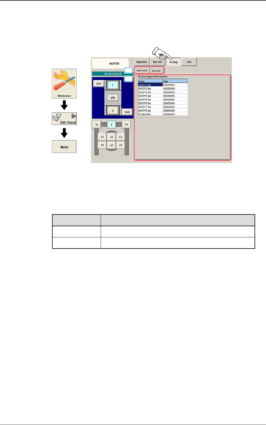 DEUKYX 1-84 193-3100 6.2 MOTOR (5) Monitor Wird im Bildschirm "Sys Info" der Tab [Monitor] gedrückt, erscheint der "Monitor"-Bildschirm. F3A62 (6) Parameter Wird im Bildschirm "Sys Info" der…