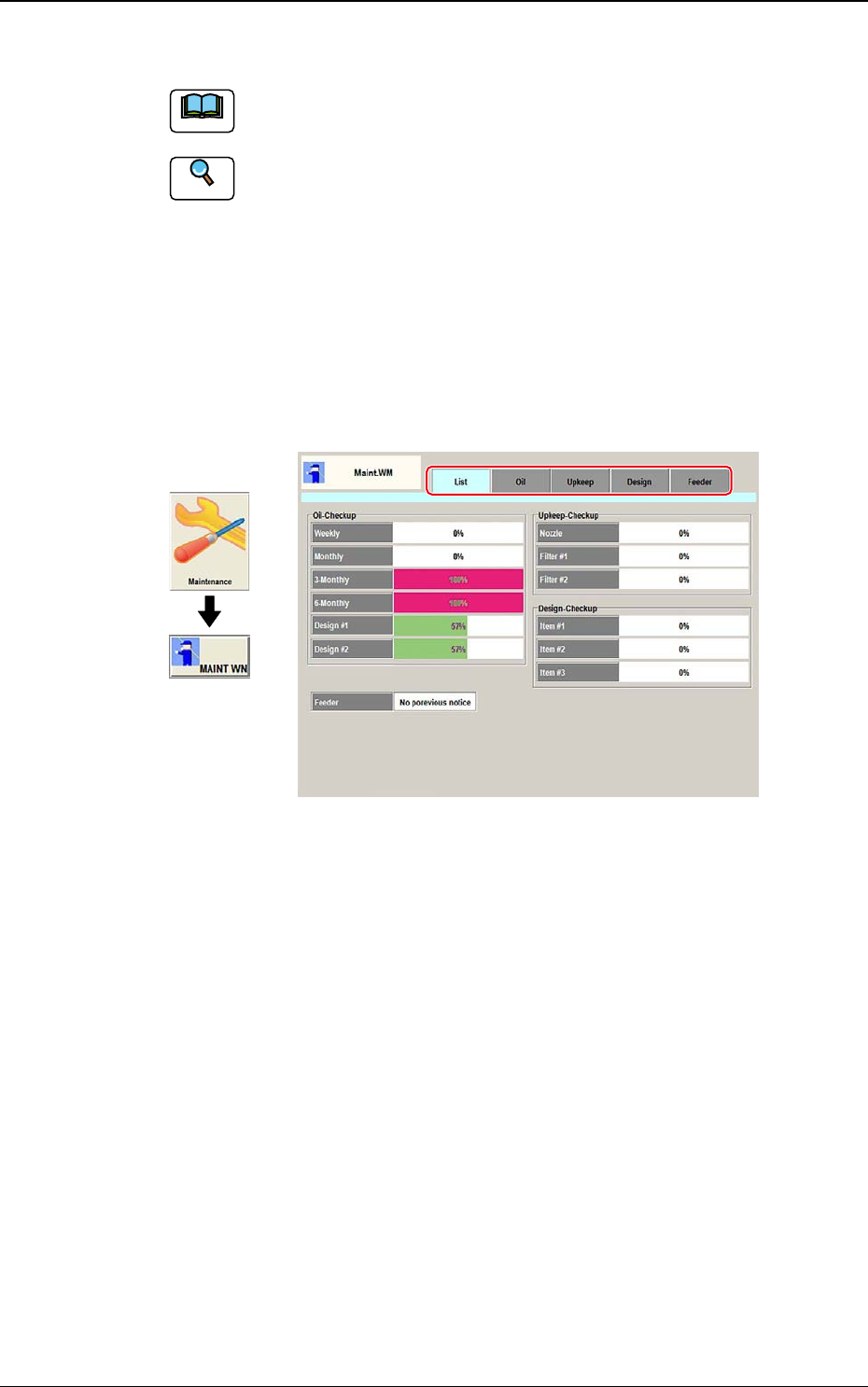 DEUKYX 1-105 193-3100 7. Maint.WM T abs Der "MaintWM"-Bildschirm verfügt über die folgenden 5 Register-Tabs. Wird ein Tab gedrückt, wird die zugehörige Registerkarte geöffnet Registerkarte Beschreibung List Es …