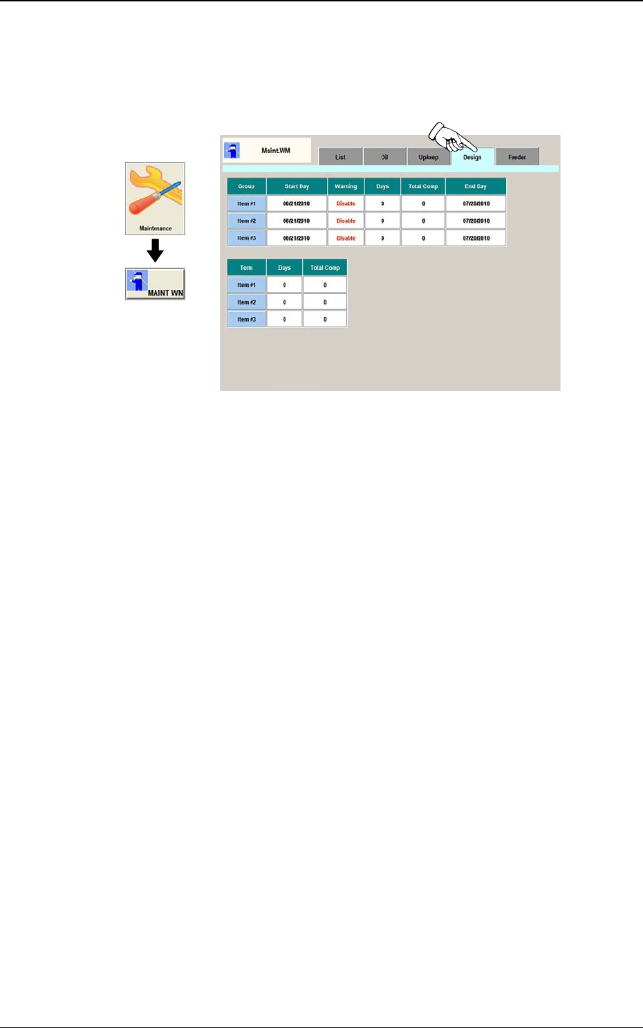 Wird im Bildschirm "Maint.WM" der Tab [Design] gedrückt, erscheint die