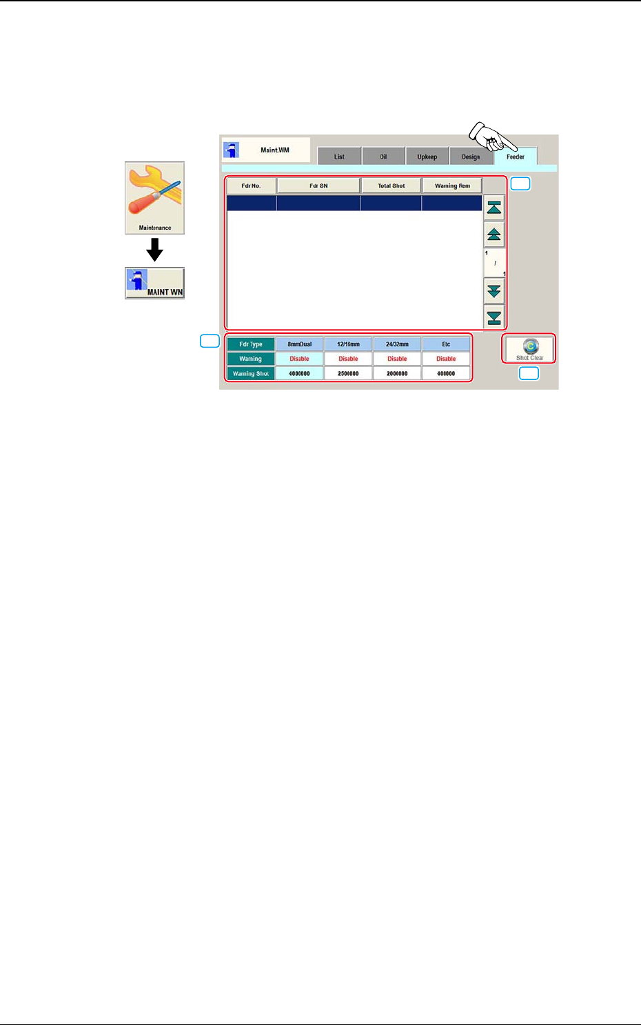 Wird im Bildschirm "Maint.WM" der Tab [Feeder] gedrückt, erscheint die