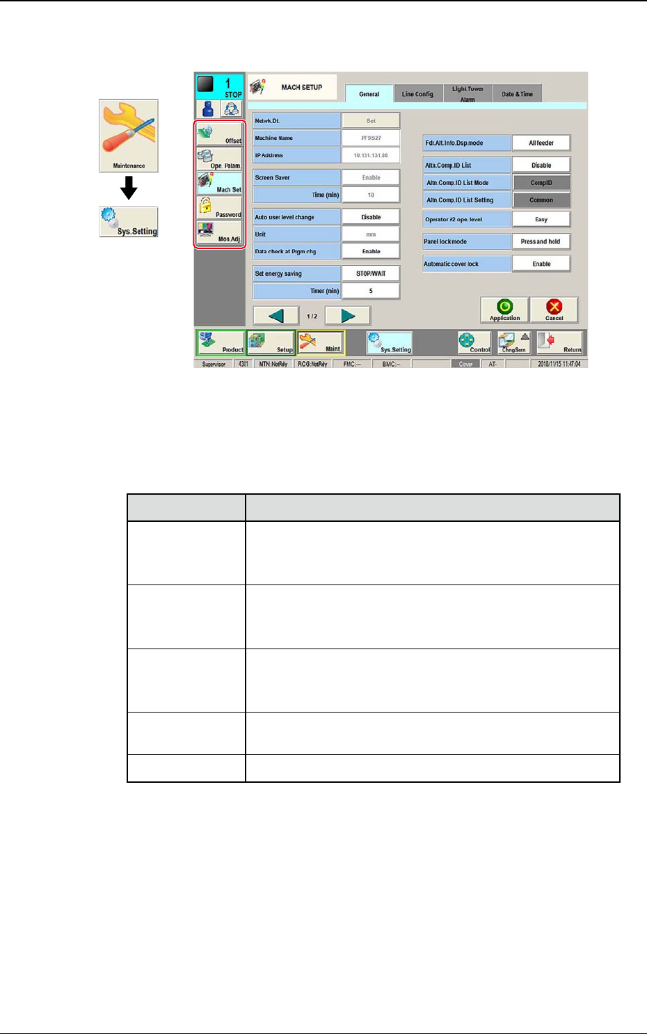 die sich auf die Einrichtungsdaten des Maschinensystems, die