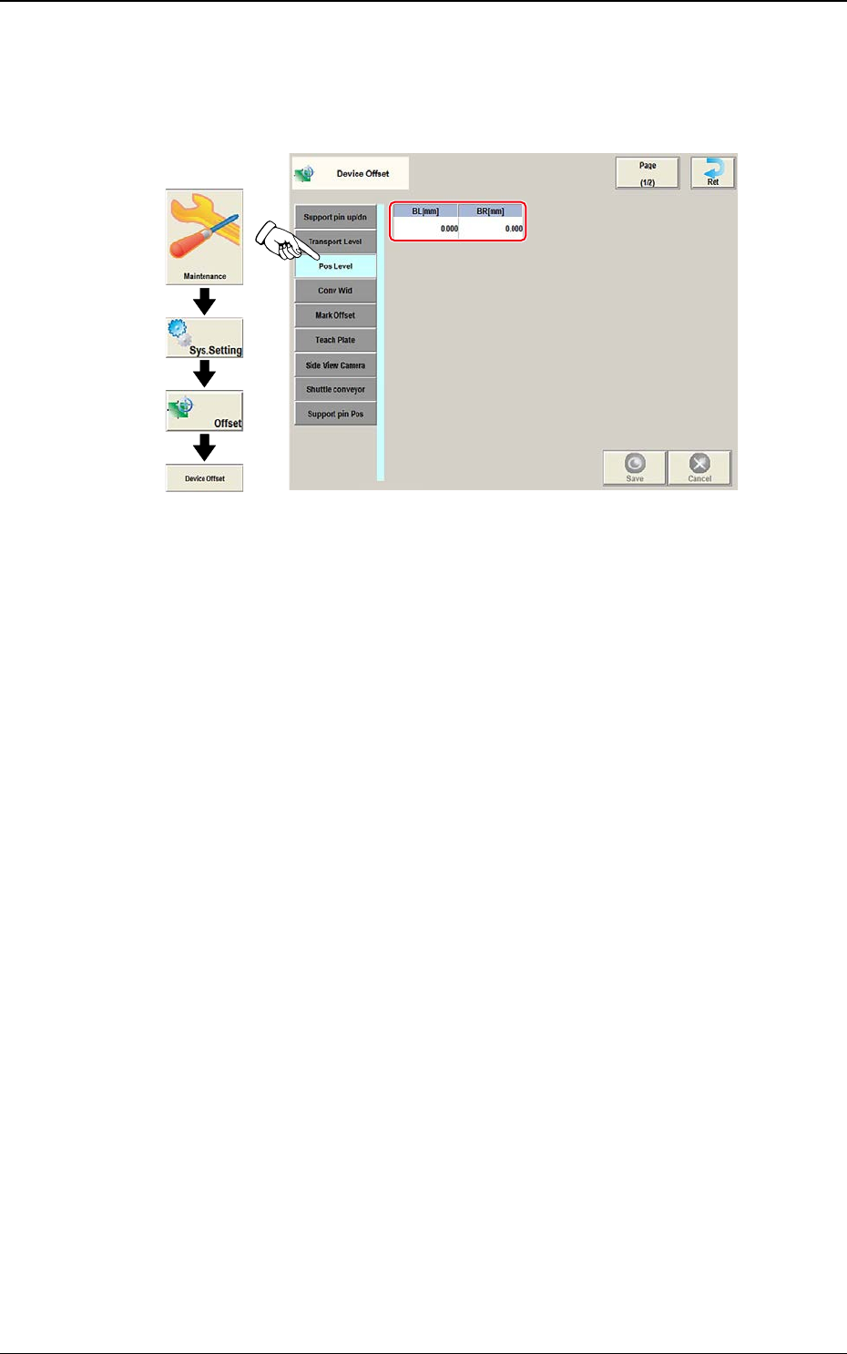 Wird der [Pos Level]-Tab im Bildschirm "Device Offset" gedrückt, öffnet sich der