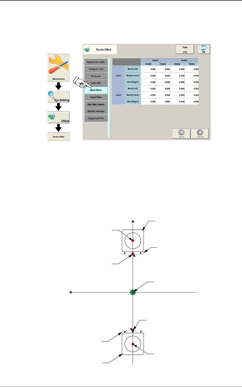 Wird der [Mark Offset]-Tab im Bildschirm "Device Offset" gedrückt, öffnet sich
