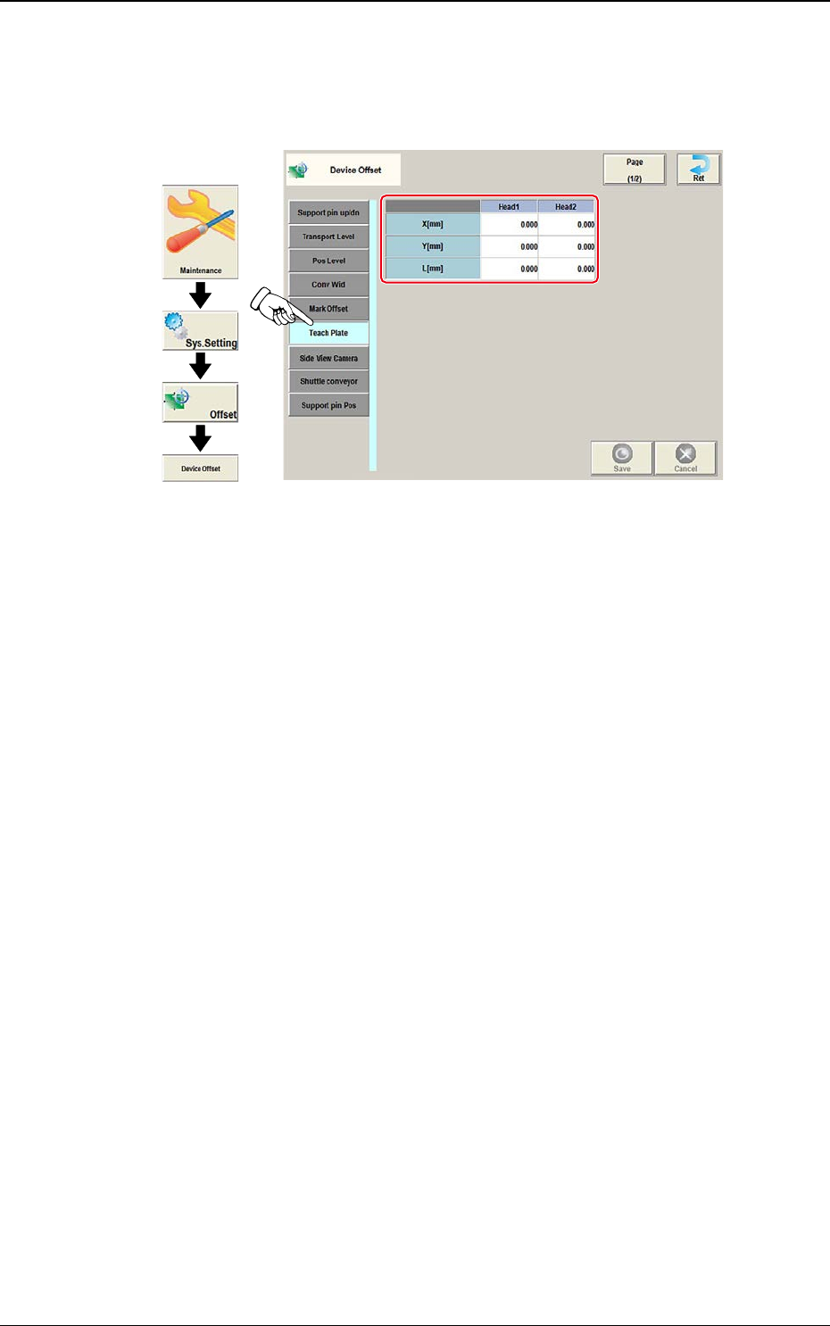 Wird der [Teach Plate]-Tab im Bildschirm "Device Offset" gedrückt, öffnet sich