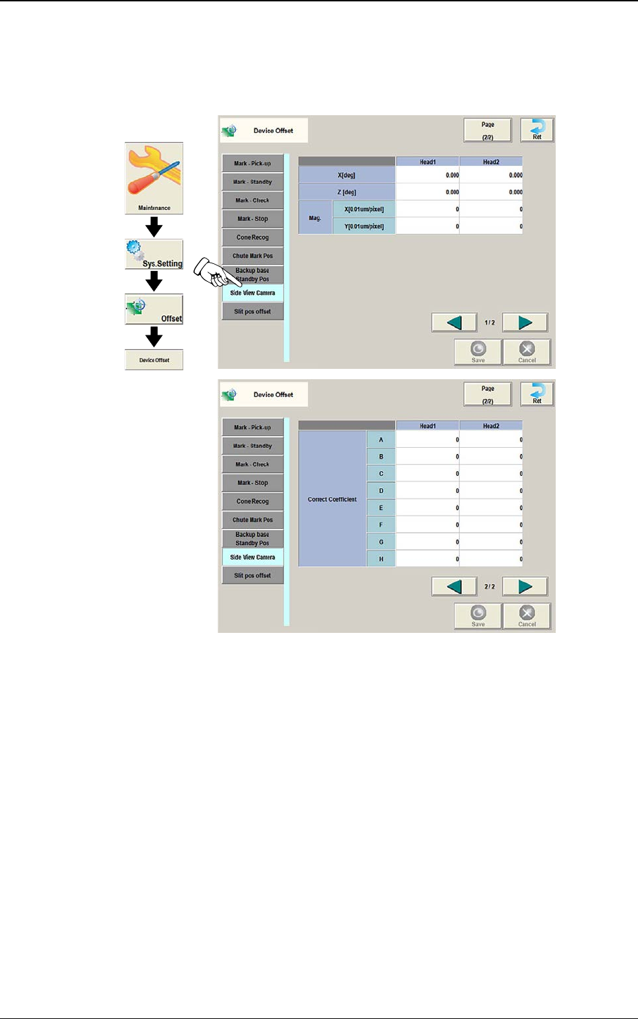 DEUKYX 2-21 193-3100 2.1 Device Offset 2.1.18 Slit Pos Offset Wird der [Slit Pos Offset]-Tab im Bildschirm "Device Offset" gedrückt, öffnet sich der folgende Bildschirm. Grafischer Ablauf F3B91