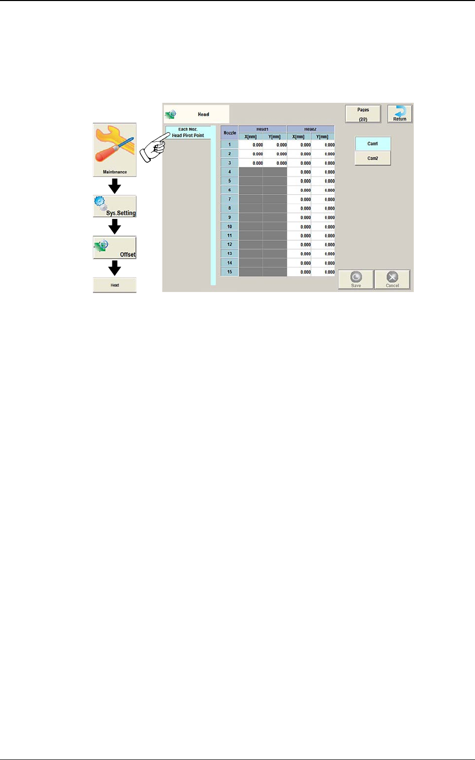 Wird der [Each Noz. Head Pivot Point]-Tab im Bildschirm "Head" gedrückt,